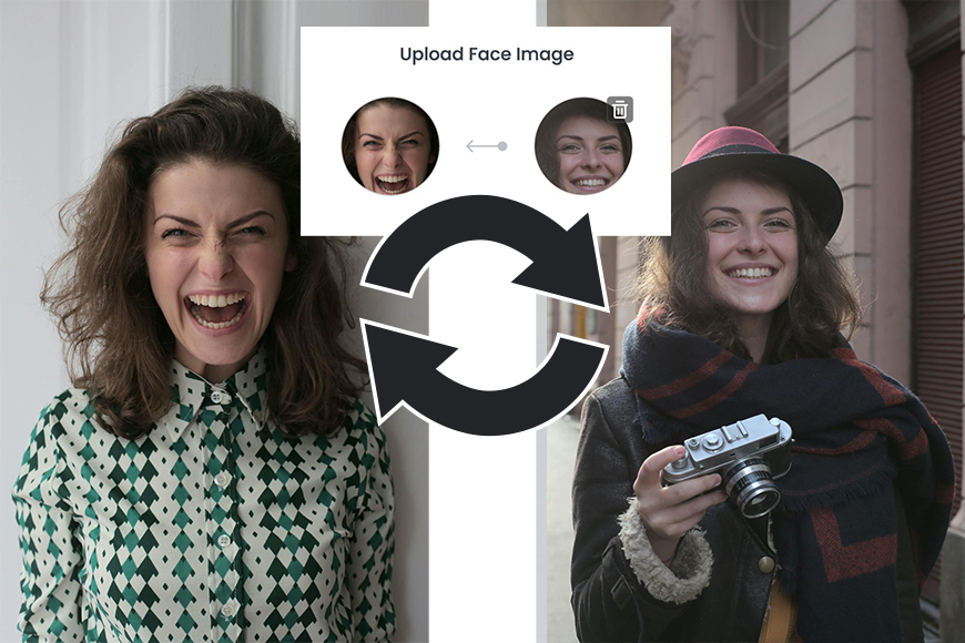 I believe AI face-swapping has two uses. First, swapping two photos from the same person. Let’s say that you love the pose and outfit in a picture, but you’re making a weird facial expression or have your eyes closed.