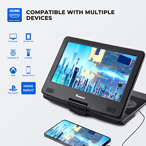 Specification: NAVISKAUTO 15.6″ Portable Blu Ray Player with 13.3” 1080P HD Screen Rechargeable Battery Support HDMI Input & HDMI Output, Sync Screen, AV Out & in, Dolby Audio, Last Memory, USB/ SD Card (Black)